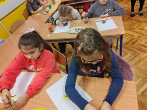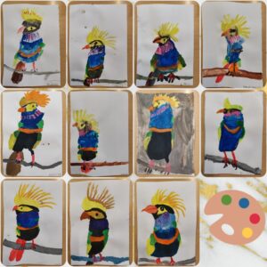 U sklopu školskog projekta Daroviti Trnjani učiteljice Ivančica i Ida su održale prvu od četiri radionice. Tema prve radionice je bilo vođeno slikanje temperama. Motiv je bila zanimljiva, šarena i neobična papiga. Papigu smo najprije pažljivo promotrili, opisali njezine boje i vizualno rastavili kako bi lakše razumjeli proces slikanja. Uz laganu opuštajuću glazbu kistovi su polako krenuli, a učionica se ispunila kreativnom energijom. Učenici su bili opušteni ali usredotočeni. Bilo je zanimljivo promatrati različite pristupe i procese stvaranja. Iako je motiv bio isti, svaka papiga je na kraju postala jedinstvena i posebna.