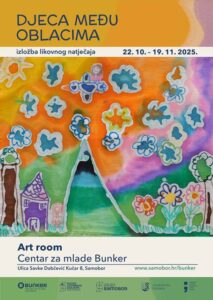 Čast i zadovoljstvo nam je pozvati Vas na otvorenje izložbe Djeca među oblacima – izložba likovnog natječaja koje će se održati u srijedu, 22. listopada 2025. u 12 sati, Art room Centar za mlade Bunker, Savke Dabčević Kučar 8, Samobor.