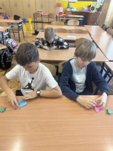 U našoj školi održana je vesela i kreativna origami radionica za učenike 1. i 3. razreda. Radionica je protekla u ozračju igre, suradnje i stvaralaštva, a učenici su s velikim zanimanjem zakoračili u svijet ove drevne japanske umjetnosti savijanja papira. Origami potječe iz Japana, a riječ „origami” dolazi od japanskih riječi ori (savijati) i kami (papir). Iako je tehnika naizgled jednostavna, zahtijeva preciznost, strpljenje i pažljivo praćenje uputa – vještine koje su naši učenici uspješno pokazali. Tijekom radionice razvijali smo finu motoriku, koncentraciju, prostornu percepciju i kreativno razmišljanje. Učenici su međusobno pomagali, razmjenjivali ideje i bodrili jedni druge, čime smo dodatno poticali zajedništvo i suradnju. Posebno veselje izazvao je trenutak kada su „oživjele” papirnate žabice koje su učenici ponosno pokazivali jedni drugima, a radionica je završila utrkom žabica.